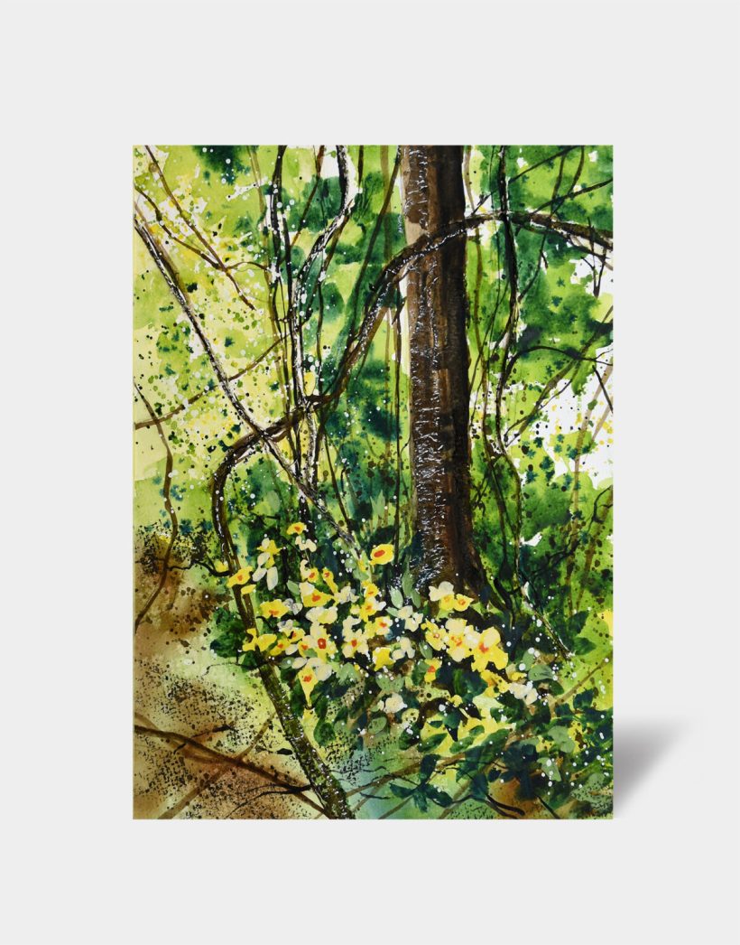 • Defining the undergrowth and vine through a base layer of string and tissue and the application of watercolour layers